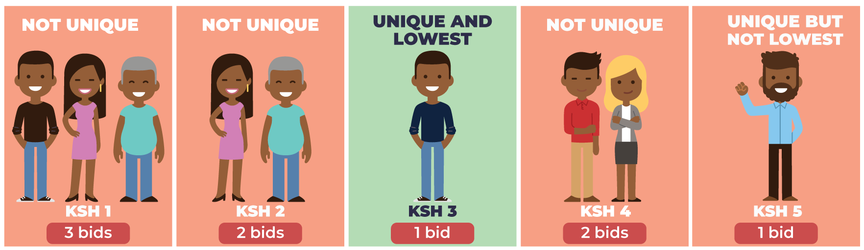 Chagua kwa busara, ikiwa bid yako ni ya chini na ya kipekee, ni yako!